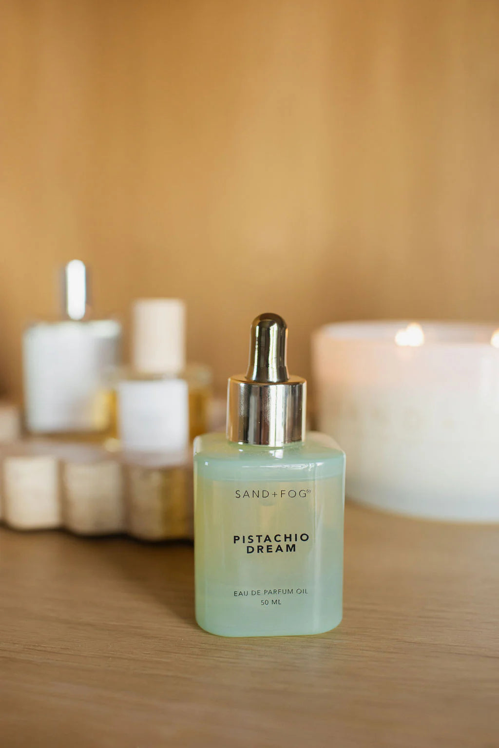 Pistachio Dream is the fragrance that wraps you in warmth, indulgence, and a touch of whimsy. The top notes of pistachio, almond, and nut create an irresistible, nutty sweetness that feels like a warm hug from the inside out. As the scent unfolds, the heart reveals soft marshmallow and sugar, transporting you to a cozy moment of pure bliss. The base notes of vanilla, brown sugar, and cream deepen the experience, leaving a rich, velvety trail that lingers like a sweet dream. Pistachio Dream is for those who believe in savoring life's sweetest moments, wrapped in the comfort of deliciously nostalgic aromas. Elevate your everyday moments with this luxurious perfume oil, available exclusively from Sand + Fog.