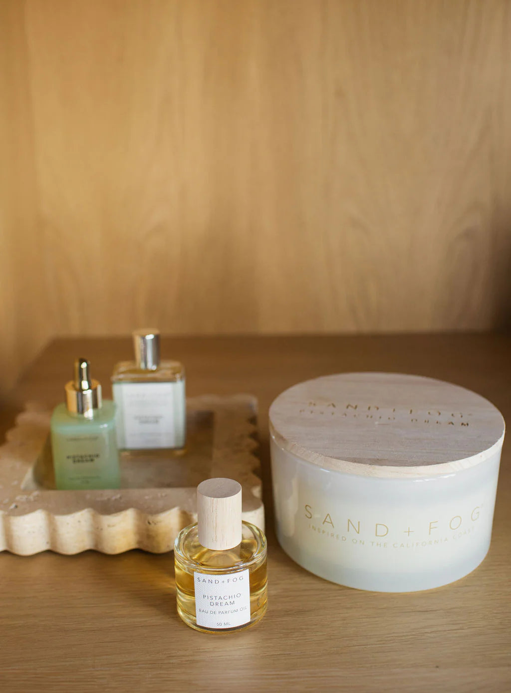 Pistachio Dream is the fragrance that wraps you in warmth, indulgence, and a touch of whimsy. The top notes of pistachio, almond, and nut create an irresistible, nutty sweetness that feels like a warm hug from the inside out. As the scent unfolds, the heart reveals soft marshmallow and sugar, transporting you to a cozy moment of pure bliss. The base notes of vanilla, brown sugar, and cream deepen the experience, leaving a rich, velvety trail that lingers like a sweet dream. Pistachio Dream is for those who believe in savoring life's sweetest moments, wrapped in the comfort of deliciously nostalgic aromas. Elevate your everyday moments with this luxurious perfume oil, available exclusively from Sand + Fog.